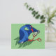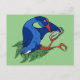 This artwork is a cartoon illustration of a pukeko using a mobile phone. The illustration shows the funny contrast between the natural and the modern, as the pukeko holds the phone with its red bill and looks at it with curiosity. The illustration uses bright colours and expressive features to create a playful and amusing image.
