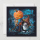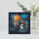 Funny pumpkin and cat in a magic hat invitation