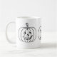 This Halloween picture on this great tea or coffee mug is a black outline of a funny pumpkin with a expression carved out as its face. The Halloween image looks great against the white background of this quality Halloween china mug, I’m sure anyone who receives this funny pumpkin face mug as Halloween treat will be pleasantly surprised.