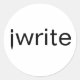 This customisable writer or author custom round vinyl stickers  says iwrite.  The first letter i looks like a black pencil.
