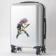 The stick looks amazing. Unfortunately, it would not stick on our suitcase as it was textured. When we found a non-textured (smooth) suitcase, the sticker stuck and looks great. The printing looked awesome.