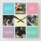 Funny Puppy Sleep Eat Repeat Dog Lover Pastel Square Wall Clock