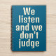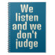 Funny qoute blue notebook . We listen and we don't judge.