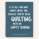 Funny quote that all quilters can relate to about quilting with an empty bobbin and not realising it until it is too late, personalised with your name.