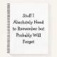 Stuff I Absolutely Need to Remember but Probably Will Forget, To-do List Notebook, Funny Quote for Forgetful People, Simple for writing notes and plans, forget to-do list notebook funny quote, forgetful people simple, writing notes, to do list journal, gift for forgetful people, funny quote about getting older, stuff i need to dowriting notes and plans, simple and stylish, humour, absentminded and scatterbrained friend, things to remember, pastel teal blue,