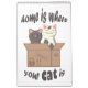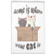 Two cats in a craft box and funny quote "home is where your cat is"