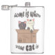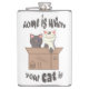 The flask itself is fine. It’s a cheap flask, obviously bought in bulk, however am prepared to overlook that. Given that it is a personalized item, I would have liked to have seen gift boxing instead of the generic packaging. Terrible printing, and/or quality. It’s a cheap, tacky vinyl. It is not cut straight and is also applied in a way that it is overhanging the bottom, causing the glue to catch on items and it will eventually roll and tear, damaging the wrap.