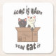Two cats in a craft box and funny quote "home is where your cat is"