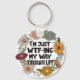 Funny life quote "I'm just WTF-ing my way through life" with black text and a daisy floral wreath.