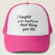 Funny quotes gift ideas joke trucker hats bulk discount retail items. Funny trucker hat gift idea for anyone that likes humour. Black and white hat.