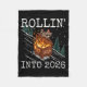 Funny Raccoon Rolling Into 2026 Retro New Year 202 Fleece Blanket
