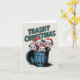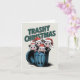 Cute nostalgia vintage folded greeting card with racoons wishing "trashy christmas".