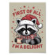 Funny Racoon First Of All I'm A Delight Christmas Photo Print