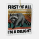 ‟Funny Racoon Quote Retro Design – “First of All, I’m a Delight” | Cute Sarcastic Animal Art | Humour Wildlife Gift for Nature Lovers‟