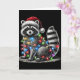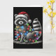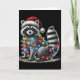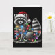 Funny Racoon Santa Hat Christmas Tree Lights Paja Card