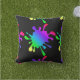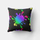 Funny Rainbow Paint Splatters Black Outdoor Pillow