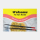 Welcome guests to your place with a smile with this funny doormat that has the look of a ramen noodles packet and is ready to be personalised with your own custom text. Add your own welcome message or humourous saying and your names. The parody noodle package has a picture of a bowl of noodles with bright red and yellow accents.