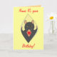 Fully customisable birthday greetings card. Add name to front and message and names inside, then order. All done. Have a great day, from me and the rat. Rat ripping card front open.