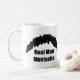A funny black and white mug for men that has a big hairy cookie duster moustache and a humourous real men saying: Real Man Moustache. Perfect for a guy with a big bushy moustache.