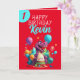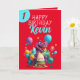 Funny Red and Teal Trex Boy 1st Birthday Card