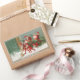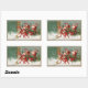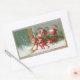 FUNNY RED CHRISTMAS ELVES SWEEPING IN THE SNOW RECTANGULAR STICKER