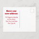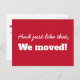 A funny minimal typography design in red and white with a cool text pairing that says: And just like that, We moved! with a text template on the back for you to add your new address in matching red and white colours inverted. #newaddress
