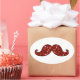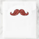 FUNNY RED MUSTACHE PRINTED GLITTER OVAL STICKER