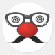 Funny Red Nose weird eyes glasses moustache Classic Round Sticker