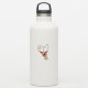 A Funny cartoon reindeer with a bright red nose and large white antlers, adorned with a red and gold bow, peeks through an open window. Outside, a snowy landscape with silhouetted pine trees and a small, glowing house is visible under a dark blue, star-filled night sky. Santa's sleigh pulled by reindeer is flying in the distance. The scene evokes a festive and whimsical Christmas atmosphere. Original Vector Art Copyright BluedarkArt TheChameleonArt.