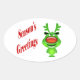 Funny reindeer "Season's Greetings" cute Oval Sticker