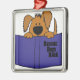 Funny Rescue Dog Reading Rescue Book Metal Ornament