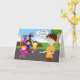 Funny retired teacher paper greeting card. Image of a retired teacher on the playground with unhappy children heading towards her. Copyright © Shoaff Ballanger Studios.