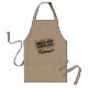 Funny retirement BBQ apron | Under new management. Humourous quote for retired men. Barbecue aprons in beige white and yellow. Cool barbeque gift for retiring dad, brother, uncle, husband, grandpa etc. Vintage rubber stamp design.