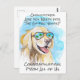 Cute and modern retirement congratulation card with a funny golden retriever on a tropical beach. Original design created from one of our hand painted watercolors.