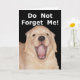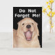 Very funny photograph of a 3 week old golden retriever puppy with his mouth wide open. This image is used to create a funny "Do Not Forget Me" Retirement congratulations greeting card.