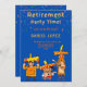 A funny Retirement Party Invitation for a fun filled event. Celebrate someone special on their Retirement with this fun Mariachi band caricatures playing their instruments, dressed in vibrant orange and yellow on a blue background. The front text includes: Retirement Party Time!, Join Us As We Honor, The First and Last Name, The Date and Time, The Location and Address. The reverse text includes: Reply and your Contact Details. To personalize, simply insert your event details into our easy template, replacing the sample text. This invitation is available in both Print and Download.