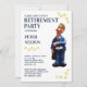 Gather friends, co-workers and family to celebrate a special person's retirement with this Funny Retirement Party Invitation. Designed with a business man cartoon image, colourful text, and stars on a white background. to personalise, simply insert your details into our easy template, replacing the sample text.