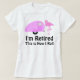 Pastel pink lawn flamingo standing proudly outside a pink retro teardrop camper. The text reads I'm retired, this is how I roll. Whimsical retirement meme tshirt recommended for full time RVers or anyone who is a camping enthusiast or snowbird.