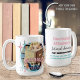 Make a statement with this unique and eye-catching Funny Retro Book Lovers Quote Gift Mug for Her. This makes a perfect gift for book lovers and bookish fans. Vintage woman peeking over her book reads "Reading is my Superpower". Personalise it even more by changing "reading" and "superpower" to whatever you like. The back reads "Emotionally attached to fictional characters most commonly found in small town rom com historical romance" with all of your favourite saying, tropes or quotes being editable. The vintage vibes work for everything from the classics, dark romance, historical romance, mystery or rom-com to smut!