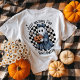 Celebrate spooky season in style with this retro coquette Halloween ghost t-shirt. Featuring a cute ghost dressed in a denim-style bow and floral robe, holding a smiling jack-o’-lantern against a vintage chequerboard backdrop, this design mixes humour, nostalgia, and trendy coquette details. Perfect for October lovers who are “just waiting for Halloween.” A fun pick for pumpkin patch trips, trick-or-treat events, Halloween parties, or casual fall outfits.
