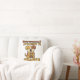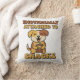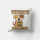 A playful square pillow capturing snack devotion and cheerful dog energy.