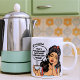 This personalised coffee mug is for mornings that require backup. It features a retro cartoon woman with a red bow and a steaming cup of coffee. Her bold declaration: “I don’t rise and shine. I caffeinate and hope for the best.” Click "Personalise this Template" to add your name and let the mug deliver the message—so you don’t have to.