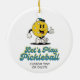 A super fun ornament featuring a funny retro pickleball cartoon mascot wearing a cap and the words "Let's Play Pickleball" in a fun font. Easily add your custom text or delete. Perfect as a holiday gift for all your pickleball friends or pickleball party favour or tournament prize/award.