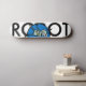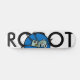 Funny cartoon style robot graphic illustration skateboard. Background text can be customised.