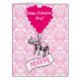 Easily personalise this cute funny vintage elephant being held up and floating with romantic pink heart shaped balloons and traditional damask with your name text or monogram to make a unique card for your mum this Valentine's day.