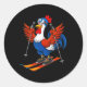 Funny Rooster Skiing Adventure Cartoon Classic Round Sticker