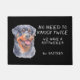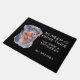 "No need to knock twice, We have a Rottweiler" declares this funny door mat. The text is in silver grey at the right side, while an picture of a black and tan Rottie is at the left. Everything is placed on a black background.