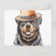 Funny Rottweiler With Hat, high-quality hand-painted watercolour dog.