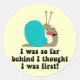 I was so far behind I thought I was first! Cool and funny snail runners t-shirts and gifts for runners who loves to run. Unique and fun runners tees, sweatshirts and gifts for friends and family. Humorus runners race gifts for the jogger and long distance runner. Running training gear and apparel.