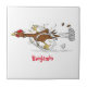Funny running cool chicken cartoon illustration ceramic tile